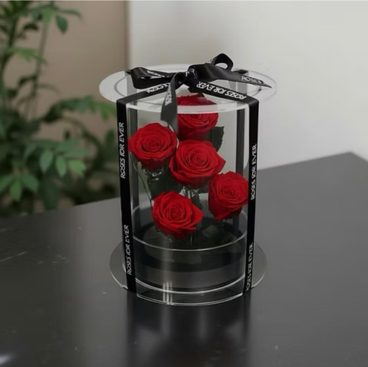 Six stunning preserved roses nestled in a crystal-clear capsule that's basically a love letter in a box. At 20cm wide x 17cm high, this modern masterpiece showcases blooms that refuse to fade, wrapped with a decorative ribbon that screams elegance. Whether it's an anniversary, Valentine's Day, or just because you want to impress someone special, this is the gift that keeps on giving, no wilting, no watering, just pure romance on display. Forever has never looked so good.